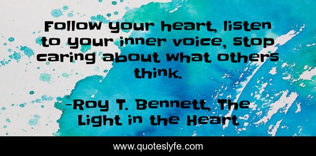 This page presents the quote "Follow your heart, listen to your inner voice, stop caring about what others think.". Author of this quote is Roy T. Bennett, The Light in the Heart. This quote is about heart, inner-voice, inspiring, wise, inspirational, inspiration, living, be-yourself, positive,.
