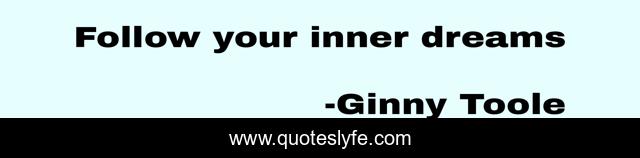 This page presents the quote "Follow your inner dreams". Author of this quote is Ginny Toole. This quote is about follow, dreams, inner, inspirational, enthusiasm,.