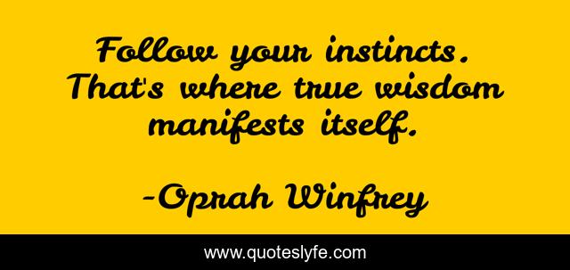 This page presents the quote "Follow your instincts. That's where true wisdom manifests itself.". Author of this quote is Oprah Winfrey. .