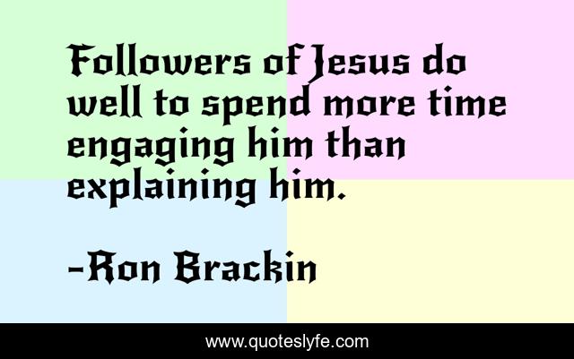 This page presents the quote "Followers of Jesus do well to spend more time engaging him than explaining him.". Author of this quote is Ron Brackin. This quote is about jesus-christ, evangelism, christian, theology, seminary, discipleship,.
