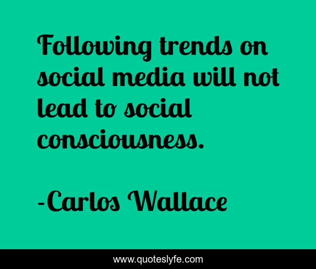 This page presents the quote "Following trends on social media will not lead to social consciousness.". Author of this quote is Carlos Wallace. This quote is about social-media, leaders, social-consciousness, carlos-wallace, leadership, leadership-characteristics,.
