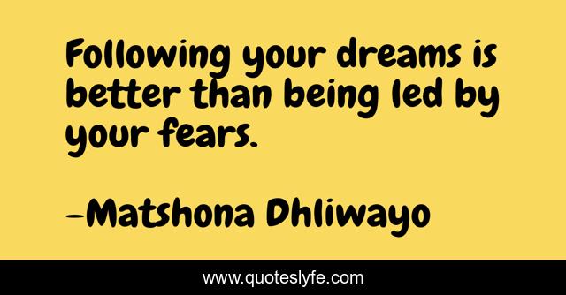 "Matshona Dhliwayo Quotes." Quoteslyfe.com, 2025. Fri. 05 Dec. 2025. <https://www.quoteslyfe.com/quote/Following-your-dreams-is-better-than-being-109079>.
