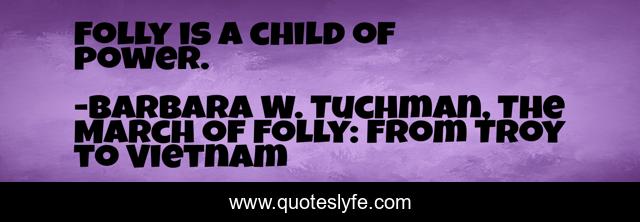 "Barbara W. Tuchman, The March of Folly: From Troy to Vietnam Quotes." Quoteslyfe.com, 2025. Sun. 07 Dec. 2025. <https://www.quoteslyfe.com/quote/Folly-is-a-child-of-power-179356>.