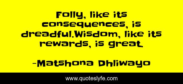 "Matshona Dhliwayo Quotes." Quoteslyfe.com, 2025. Sat. 06 Dec. 2025. <https://www.quoteslyfe.com/quote/Folly-like-its-consequences-is-dreadful-Wisdom-98392>.