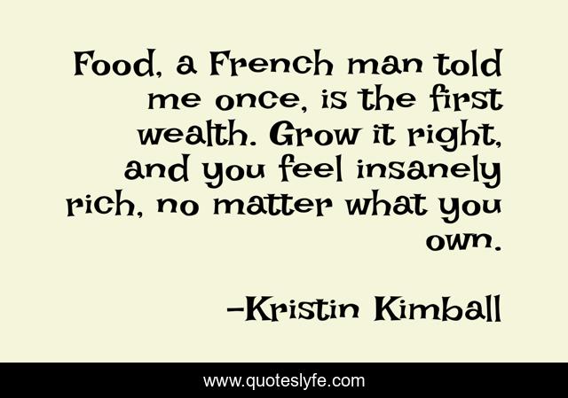 This page presents the quote "Food, a French man told me once, is the first wealth. Grow it right, and you feel insanely rich, no matter what you own.". Author of this quote is Kristin Kimball. .