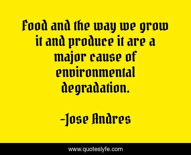 This page presents the quote "Food and the way we grow it and produce it are a major cause of environmental degradation.". Author of this quote is Jose Andres. This quote is about food, grow, way,.