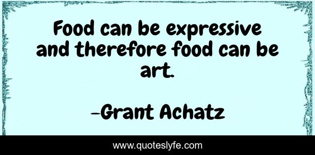 This page presents the quote "Food can be expressive and therefore food can be art.". Author of this quote is Grant Achatz. This quote is about art, expressive, therefore,.