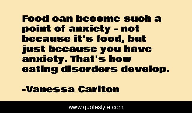 This page presents the quote "Food can become such a point of anxiety - not because it's food, but just because you have anxiety. That's how eating disorders develop.". Author of this quote is Vanessa Carlton. This quote is about anxiety, eating,.
