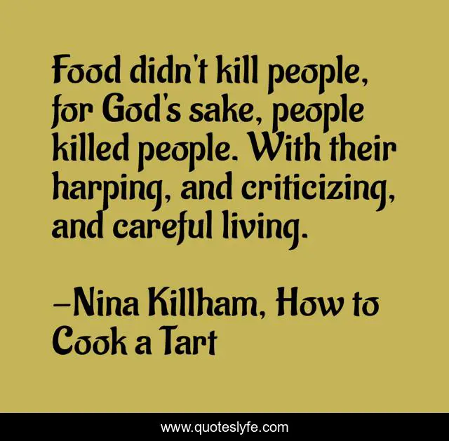 "Nina Killham, How to Cook a Tart Quotes." Quoteslyfe.com, 2025. Fri. 05 Dec. 2025. <https://www.quoteslyfe.com/quote/Food-didn-t-kill-people-for-God-168417>.
