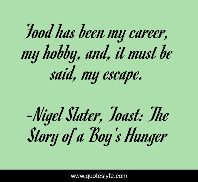 "Nigel Slater, Toast: The Story of a Boy's Hunger Quotes." Quoteslyfe.com, 2025. Tue. 09 Dec. 2025. <https://www.quoteslyfe.com/quote/Food-has-been-my-career-my-hobby-167981>.