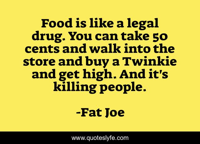 This page presents the quote "Food is like a legal drug. You can take 50 cents and walk into the store and buy a Twinkie and get high. And it's killing people.". Author of this quote is Fat Joe. This quote is about food, walk, people,.