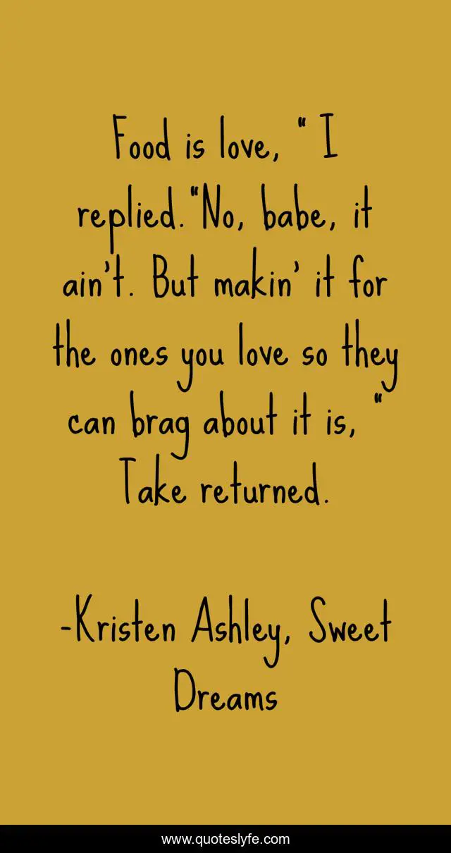 "Kristen Ashley, Sweet Dreams Quotes." Quoteslyfe.com, 2025. Tue. 09 Dec. 2025. <https://www.quoteslyfe.com/quote/Food-is-love-I-replied-No-babe-168161>.