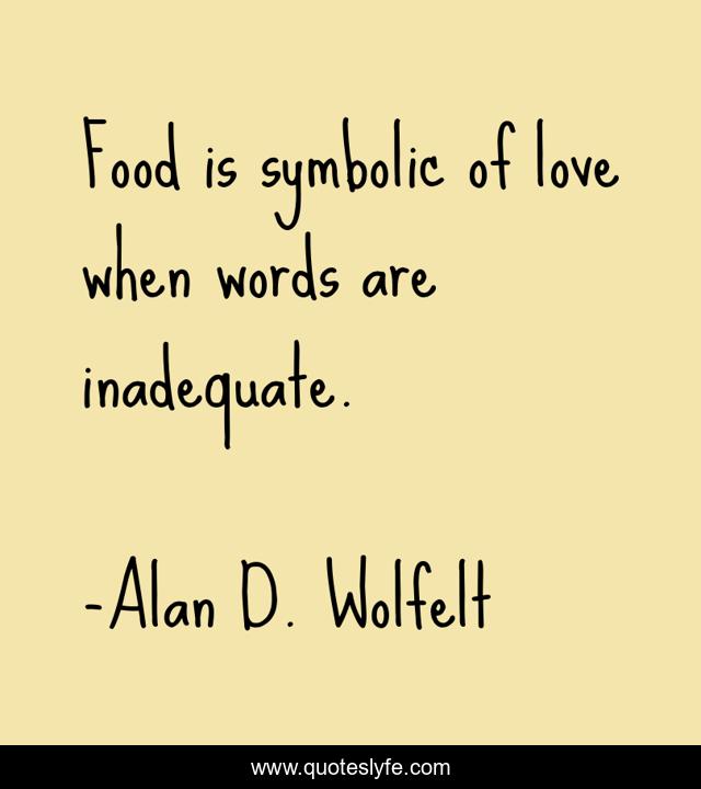 "Alan D. Wolfelt Quotes." Quoteslyfe.com, 2025. Fri. 05 Dec. 2025. <https://www.quoteslyfe.com/quote/Food-is-symbolic-of-love-when-words-123263>.