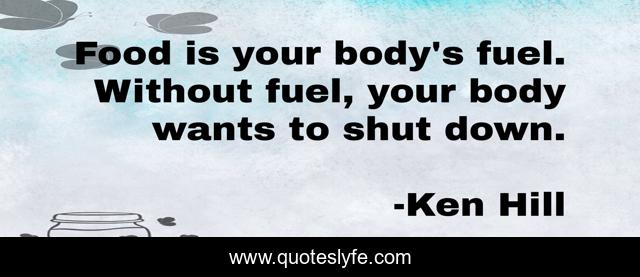 This page presents the quote "Food is your body's fuel. Without fuel, your body wants to shut down.". Author of this quote is Ken Hill. This quote is about body, down, fuel,.