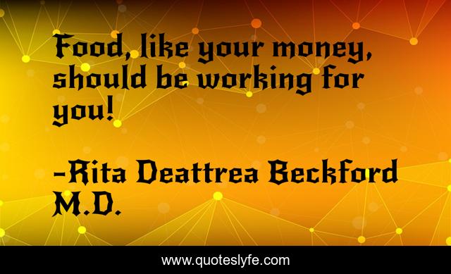 "Rita Deattrea Beckford M.D. Quotes." Quoteslyfe.com, 2025. Sat. 06 Dec. 2025. <https://www.quoteslyfe.com/quote/Food-like-your-money-should-be-working-177135>.
