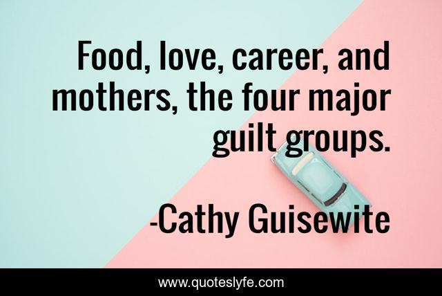 This page presents the quote "Food, love, career, and mothers, the four major guilt groups.". Author of this quote is Cathy Guisewite. This quote is about food, love, guilt, affection,.