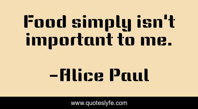 "Alice Paul Quotes." Quoteslyfe.com, 2025. Sat. 06 Dec. 2025. <https://www.quoteslyfe.com/quote/Food-simply-isn-t-important-to-me-300854>.