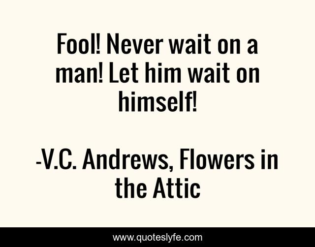 "V.C. Andrews, Flowers in the Attic Quotes." Quoteslyfe.com, 2025. Sun. 14 Dec. 2025. <https://www.quoteslyfe.com/quote/Fool-Never-wait-on-a-man-Let-35915>.