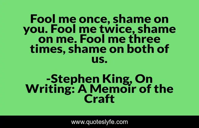 This page presents the quote "Fool me once, shame on you. Fool me twice, shame on me. Fool me three times, shame on both of us.". Author of this quote is Stephen King, On Writing: A Memoir of the Craft. This quote is about fool, shame, be-fool,.