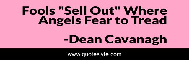 This page presents the quote "Fools "Sell Out" Where Angels Fear to Tread". Author of this quote is Dean Cavanagh. This quote is about fear, angels,.