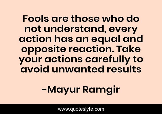 This page presents the quote "Fools are those who do not understand, every action has an equal and opposite reaction. Take your actions carefully to avoid unwanted results". Author of this quote is Mayur Ramgir. .