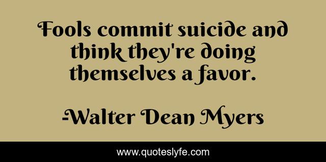 This page presents the quote "Fools commit suicide and think they're doing themselves a favor.". Author of this quote is Walter Dean Myers. This quote is about favor, fools, suicide,.