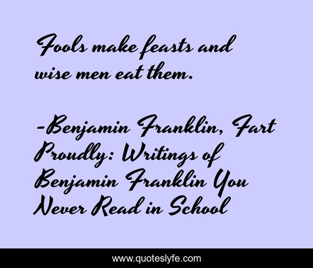 "Benjamin Franklin, Fart Proudly: Writings of Benjamin Franklin You Never Read in School Quotes." Quoteslyfe.com, 2025. Sat. 06 Dec. 2025. <https://www.quoteslyfe.com/quote/Fools-make-feasts-and-wise-men-eat-167860>.