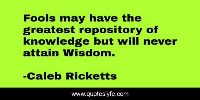 This page presents the quote "Fools may have the greatest repository of knowledge but will never attain Wisdom.". Author of this quote is Caleb Ricketts. This quote is about quote, fools, knowledge, wisdom,.