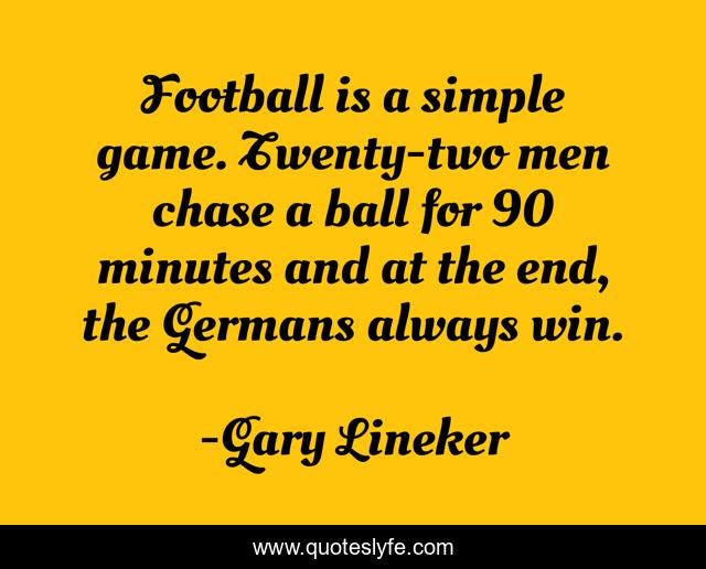 This page presents the quote "Football is a simple game. Twenty-two men chase a ball for 90 minutes and at the end, the Germans always win.". Author of this quote is Gary Lineker. This quote is about simple, football, men,.
