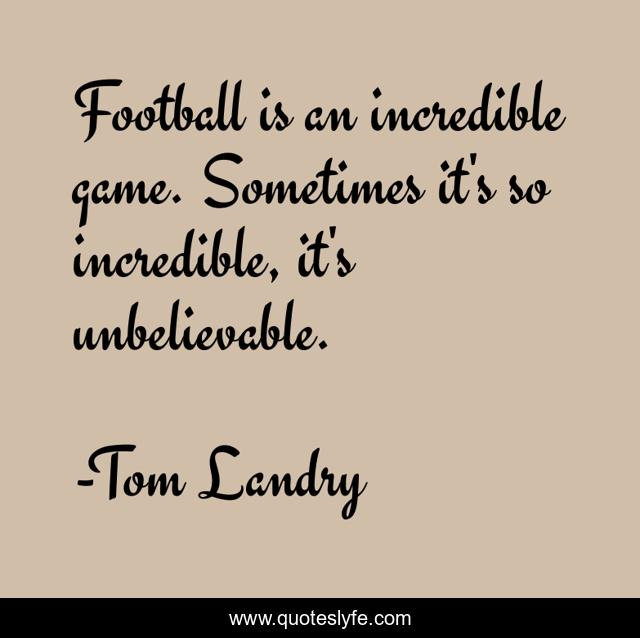 This page presents the quote "Football is an incredible game. Sometimes it's so incredible, it's unbelievable.". Author of this quote is Tom Landry. .