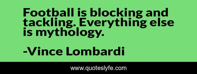 This page presents the quote "Football is blocking and tackling. Everything else is mythology.". Author of this quote is Vince Lombardi. .
