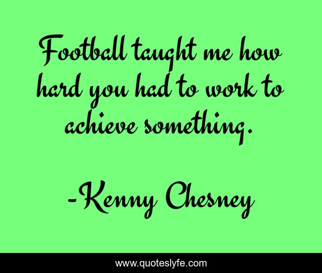 This page presents the quote "Football taught me how hard you had to work to achieve something.". Author of this quote is Kenny Chesney. This quote is about me, football,.