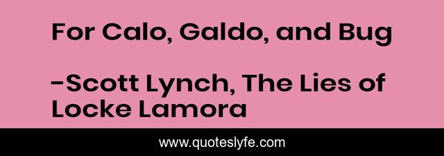 "Scott Lynch, The Lies of Locke Lamora Quotes." Quoteslyfe.com, 2025. Fri. 05 Dec. 2025. <https://www.quoteslyfe.com/quote/For-Calo-Galdo-and-Bug-217794>.