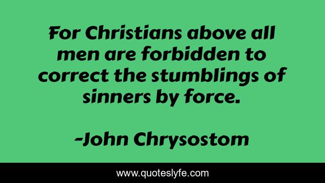This page presents the quote "For Christians above all men are forbidden to correct the stumblings of sinners by force.". Author of this quote is John Chrysostom. This quote is about christianity, peace, sin, orthodoxy,.