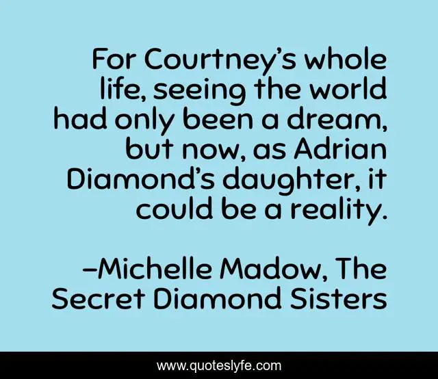 This page presents the quote "For Courtney’s whole life, seeing the world had only been a dream, but now, as Adrian Diamond’s daughter, it could be a reality.". Author of this quote is Michelle Madow, The Secret Diamond Sisters. This quote is about wanderlust, dream, traveling, dreams,.