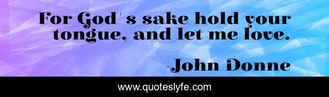This page presents the quote "For God's sake hold your tongue, and let me love.". Author of this quote is John Donne. This quote is about me, tongue, love, affection,.
