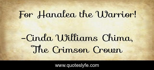 "Cinda Williams Chima, The Crimson Crown Quotes." Quoteslyfe.com, 2025. Sun. 07 Dec. 2025. <https://www.quoteslyfe.com/quote/For-Hanalea-the-Warrior-220336>.