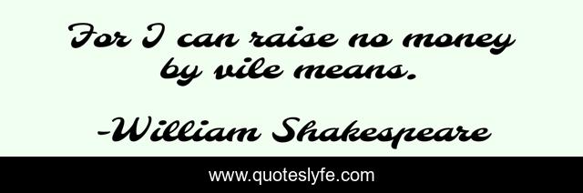 This page presents the quote "For I can raise no money by vile means.". Author of this quote is William Shakespeare. This quote is about raise, i can, means,.