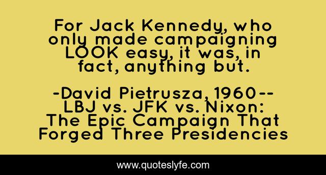 "David Pietrusza, 1960--LBJ vs. JFK vs. Nixon: The Epic Campaign That Forged Three Presidencies Quotes." Quoteslyfe.com, 2025. Sat. 06 Dec. 2025. <https://www.quoteslyfe.com/quote/For-Jack-Kennedy-who-only-made-campaigning-253758>.