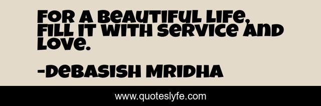 This page presents the quote "For a beautiful life, fill it with service and love.". Author of this quote is Debasish Mridha. This quote is about life, love, knowledge, inspirational, intelligence, philosophy, wisdom, quotes, affection,.