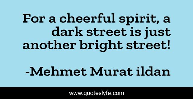 "Mehmet Murat ildan Quotes." Quoteslyfe.com, 2025. Sat. 06 Dec. 2025. <https://www.quoteslyfe.com/quote/For-a-cheerful-spirit-a-dark-street-139462>.