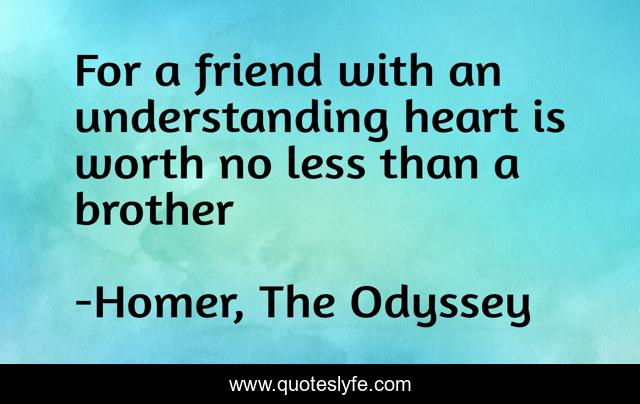 This page presents the quote "For a friend with an understanding heart is worth no less than a brother". Author of this quote is Homer, The Odyssey. .