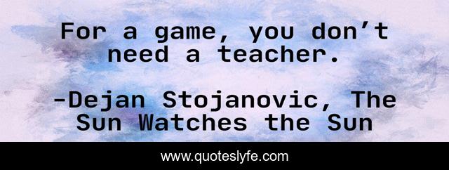 This page presents the quote "For a game, you don’t need a teacher.". Author of this quote is Dejan Stojanovic, The Sun Watches the Sun. This quote is about poets, literature, dejan-stojanovic, philosophy, poetry, wisdom, quotes, game, books,.