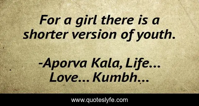 This page presents the quote "For a girl there is a shorter version of youth.". Author of this quote is Aporva Kala, Life... Love... Kumbh.... This quote is about youth, girl,.