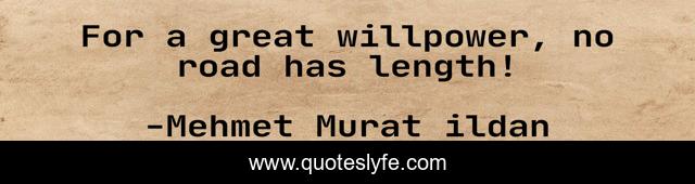This page presents the quote "For a great willpower, no road has length!". Author of this quote is Mehmet Murat ildan. .