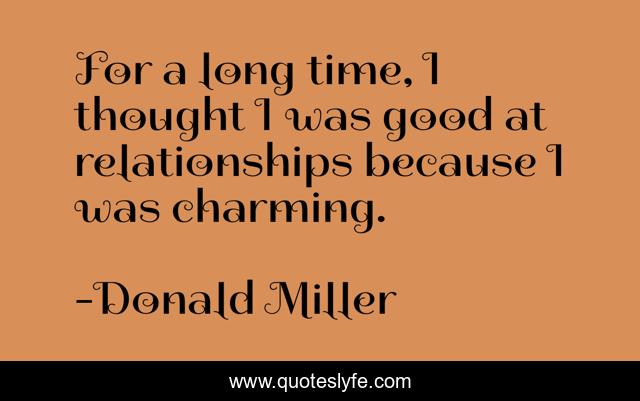 This page presents the quote "For a long time, I thought I was good at relationships because I was charming.". Author of this quote is Donald Miller. This quote is about discipleship, lonliness,.