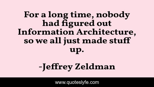 This page presents the quote "For a long time, nobody had figured out Information Architecture, so we all just made stuff up.". Author of this quote is Jeffrey Zeldman. This quote is about information, long, time,.