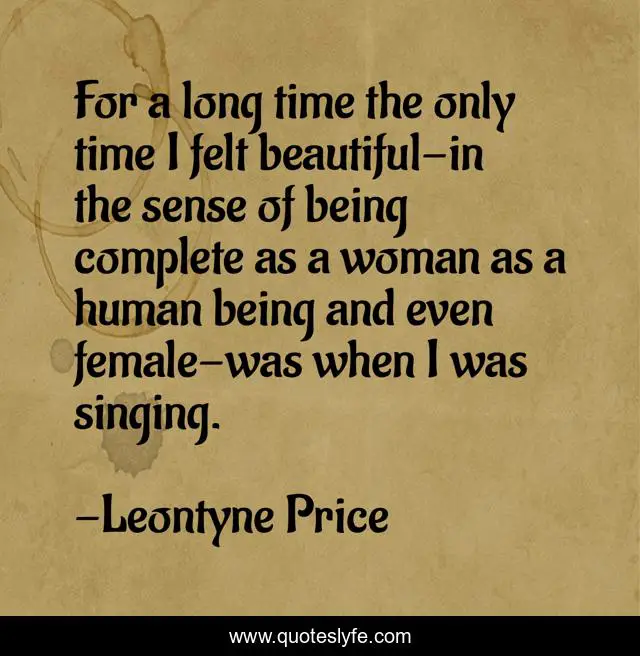 This page presents the quote "For a long time the only time I felt beautiful-in the sense of being complete as a woman as a human being and even female-was when I was singing.". Author of this quote is Leontyne Price. .