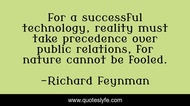 This page presents the quote "For a successful technology, reality must take precedence over public relations, for nature cannot be fooled.". Author of this quote is Richard Feynman. .