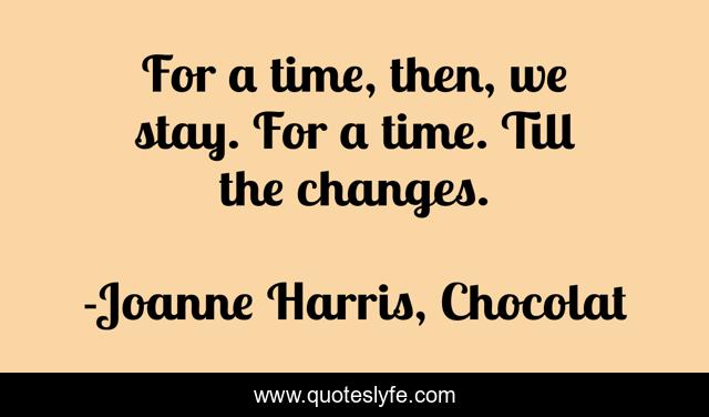 "Joanne Harris, Chocolat Quotes." Quoteslyfe.com, 2025. Sat. 06 Dec. 2025. <https://www.quoteslyfe.com/quote/For-a-time-then-we-stay-For-137399>.